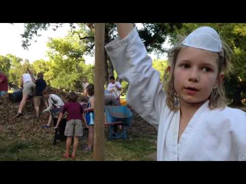 Young Clifford, a student at Zen Martial Arts in Sacramento, recently gathered his karate friends to help the Sacramento Tree Foundation distribute mulch to the tress at McKinley park. Here Clifford explains how the mulch helps tress and what in the world this all has to do with self-defense.